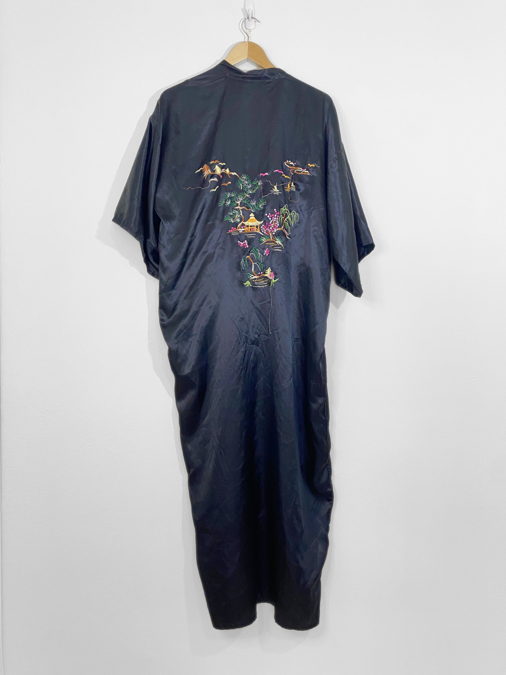 Black Satin Embroidered Kimono (OS)